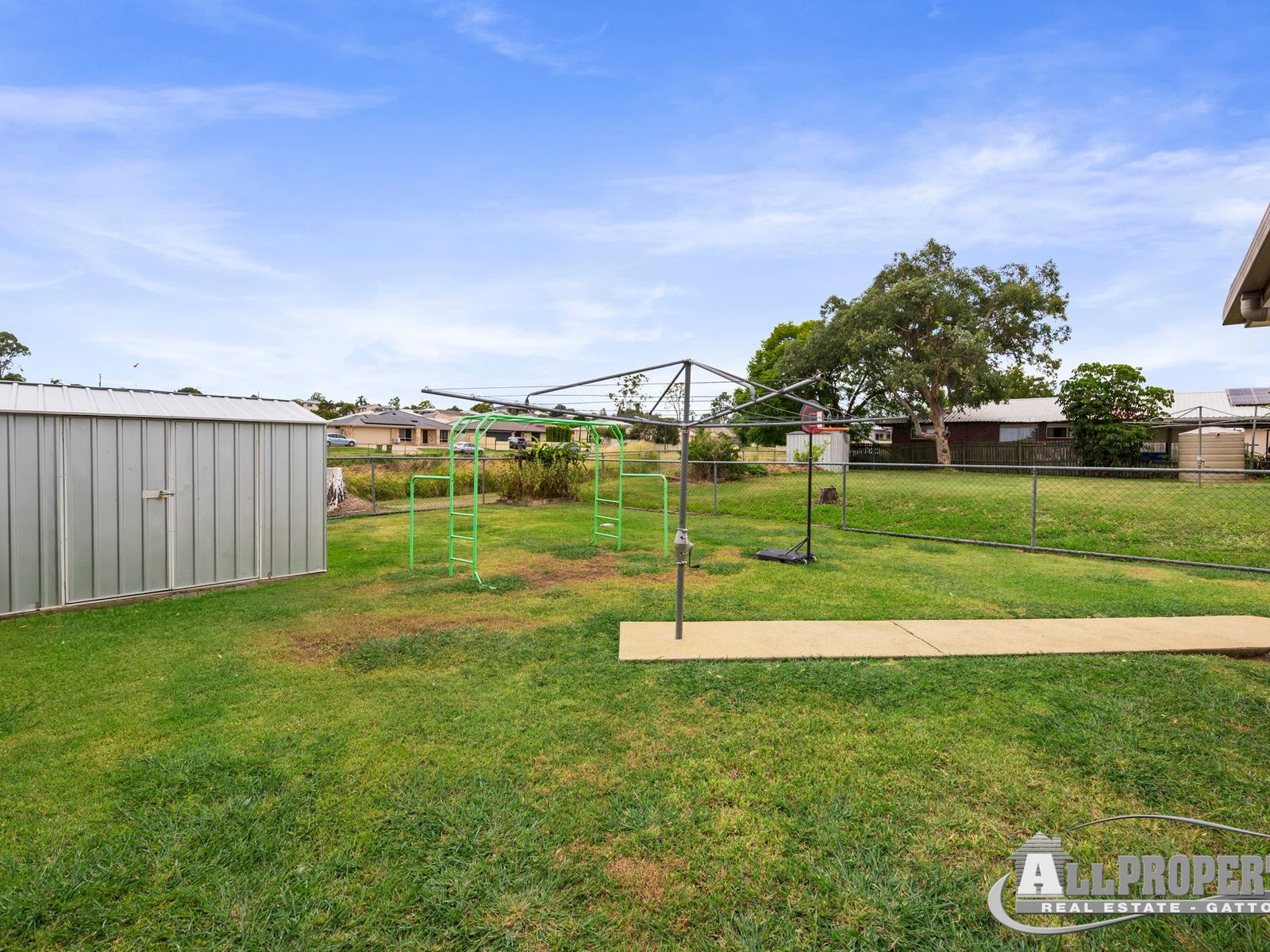 Fully fenced yard with new garden shed